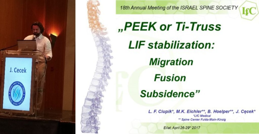 As part of the 3D Ti-Truss implants promotion, (so-called “scientific marketing”) Jacek Cęcek (LfC), on behalf of the authors, gave a lecture during the scientific session of the conference entitled “PEEK or Ti-Truss LIF stabilization: Migration, Fusion, Subsidence”.