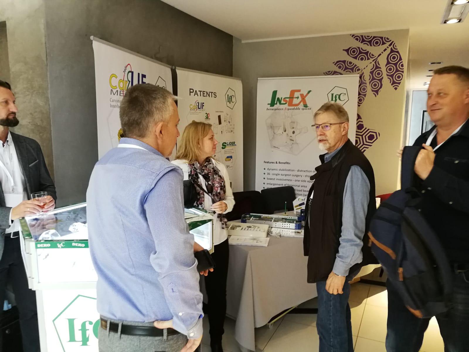 Część wykładowo-wystawowa Zjazdu PTChK miała miejsce w Hotelu Grape Town w Zielonej Górze. Stoisko wystawowe firmy LfC znajdowało się w bliskości głównej sali obrad. Dzięki korzystnej lokalizacji oraz atrakcyjnej prezentacji każdy uczestnik Zjazdu miał świetną okazję zaznajomić się z nowościami i bogatą ofert implantów kręgosłupowych obejmującą System Kręgosłupowy DERO/ LfC. Należy podkreślić, że zainteresowanie było duże. Największą uwagą cieszyła się metody 3D (CarLIF) oraz SLIDER, a także najnowsza stabilizacja biodrowo-krzyżowa ISaF- rewelacja wystawy i pre-kursu. Na wystawie odbyła się również prezentacja programu MediCad oraz promocja kongresu Israel Spine Society w 2019 roku.