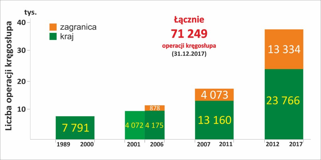 Z ogromną satysfakcją pragniemy również poinformować, iż tylko w 2017r. implanty LfC pomogły 7.462 pacjentom! Technologie medyczne LfC wsparły leczenie poważnych schorzeń kręgosłupa w wielu krajach Unii Europejskiej (m.in. w Niemczech, Irlandii, Anglii, Włoszech, etc), w Ameryce Środkowej (Meksyku) i Południowej (Brazylii), a także w Izraelu. Natomiast w Polsce tylko w 2017r. zostało przeprowadzonych: 4.8 tysiąca operacji kręgosłupa.