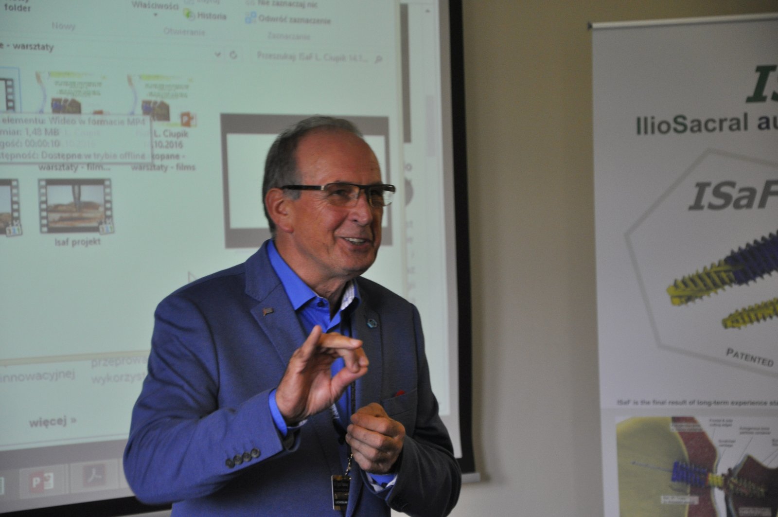 Pierwszym prelegentem był Lechosław F. Ciupik, prezes LfC. Zaprezentował on najnowszej generacji rozwiązanie – system implant-narzędzie do leczenia dolegliwości pogranicza biodrowo-krzyżowego. Referujący podkreślił, że decydującym wskazaniem do chirurgicznego leczenia tego obszaru jest ból, co zostało potem potwierdzone przez kolejnych prelegentów. L. F. Ciupik wskazał jakim wyzwaniem jest stworzenie efektywnej technologii chirurgicznej w tym obszarze i jak wyglądał proces rozwoju tego rozwiązania. Opracowania przez LfC stabilizacja ISaF bazuje na opanowanej od 7-8 lat przez firmę technologii EBT (Electron Beam Technology) wytwarzania implantów 3D-Ti-Truss, która w znaczący sposób sprzyja wystąpieniu osteointegracji. Wskazał na mechanizm osteointegracji z implantem, który upowszechnia się pod hasłem „Ivy-like mechanism of osteointegration” (L.C., 2012).