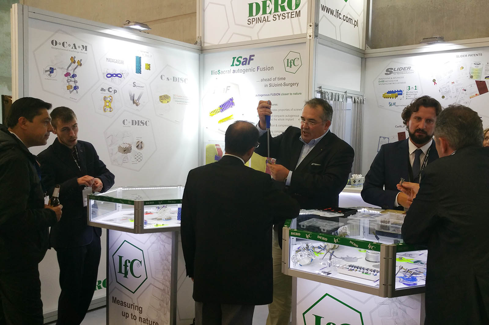 LfC focused on the introduction of SaF (IllioSacral autogenic Fusion) implant as the well as new website with “hand-touch” technology. Well established devices as CarRLIF, SLIDER and others completed the portfolio showing company’s great competences in the field of surgical technologies for spinal treatment. That together made LfC’s booth to one of the most interesting and attractive among 160 exhibitors. Experts from all over the world – spinal surgeons, distributors and competitors from Ireland, Brazil, the USA, Mexico, Germany, Israel, Pakistan, Great Britain and many more – came to evaluate or continue the cooperation.