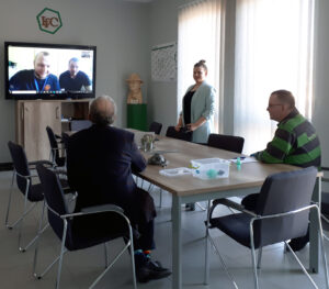 Our first Skype video chat with paramedics (Safety comes first with 2 m distancing in LfC conference room)