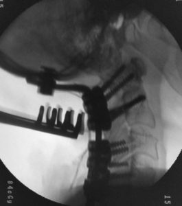 Sex: M Diagnosis: Tumor C1, C2 Imlanted: Occipito Cervical Anchorage Method (OCAM) 2 anchors, 10 cervical screws, 2 occipital brackets