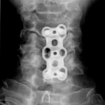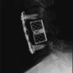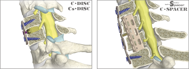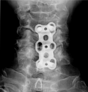 Implanted: intervertebral disc C Disc PEEK together with the bone substitute Cerasorb M – granules, supported with cervical plate asCp L = 65mm with eight locked in plate cerival screws