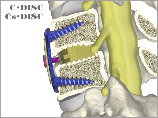 Nowa wersja stabilizatora D·Fun·DISC z płytką szyjną “Madagascar” oraz protezą „Cs·DISC” wykonaną w technologii EBT ze stopu tytanu, lub PEEK-ową protezą „C·DISC”