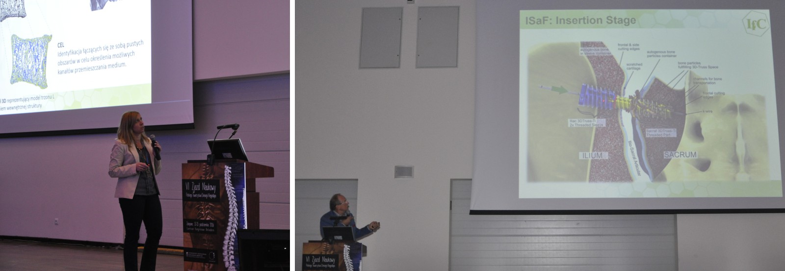 Przewidziano również sesję dotyczącą pozostałych tematów, w której LfC zaprezentowała trzy wystąpienia, żywo odebrane i dyskutowane przez zgromadzonych gości. Aleksandra Liebthal w imieniu zespołu autorskiego polsko-niemieckiego wygłosiła referat pt.:”Migracja cage’a typu 3D-Ti-Truss i PEEK straight/oblique w stabilizacjach z dostępu P/TLIF; post-op i 2.letni follow-up”. W kolejnej sesji Agnieszka Kierzkowska w imieniu zespołu LfC przedstawiła wystąpienie pt.:”Morfometria trzonu starzejącego – osteoporotycznego kręgosłupa lędźwiowego w kontekście jego wzmacniania i stabilizacji”. W sesji podsumowującej Zjazd Lechosław F. Ciupik zaprezentował wystąpienie pt.: „ISaF: wzmocnienie stabilizacji biodrowo-krzyżowej przyspieszoną fuzją poprzez kość autogenną” dotyczące najnowszej technologii, a jednocześnie metody ISaF, której poświęcone były także warsztaty firmowe.