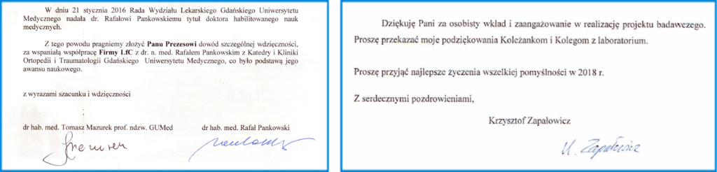 Według współpracujących chirurgów podejmowana współpraca z LfC charakteryzuje się dużą efektywnością, profesjonalizmem i wsparciem firmy. Nie tylko w zakresie udostępnienia nowoczesnych laboratoriów badawczych i aparatury badawczej, ale również wkładu w postaci innowacyjnej wiedzy techniczno-medycznej zespołu firmy z prezesem Lechosławem F. Ciupikiem na czele i koordynacją przez doktor Agnieszkę Kierzkowską. Podkreślane jest to niejednokrotnie podczas wystąpień publicznych oraz w osobistych podziękowaniach. Każde takie działanie i wspólne sukcesy są zachętą do dalszej pracy i podejmowania kolejnych wyzwań badawczo-rozwojowych.